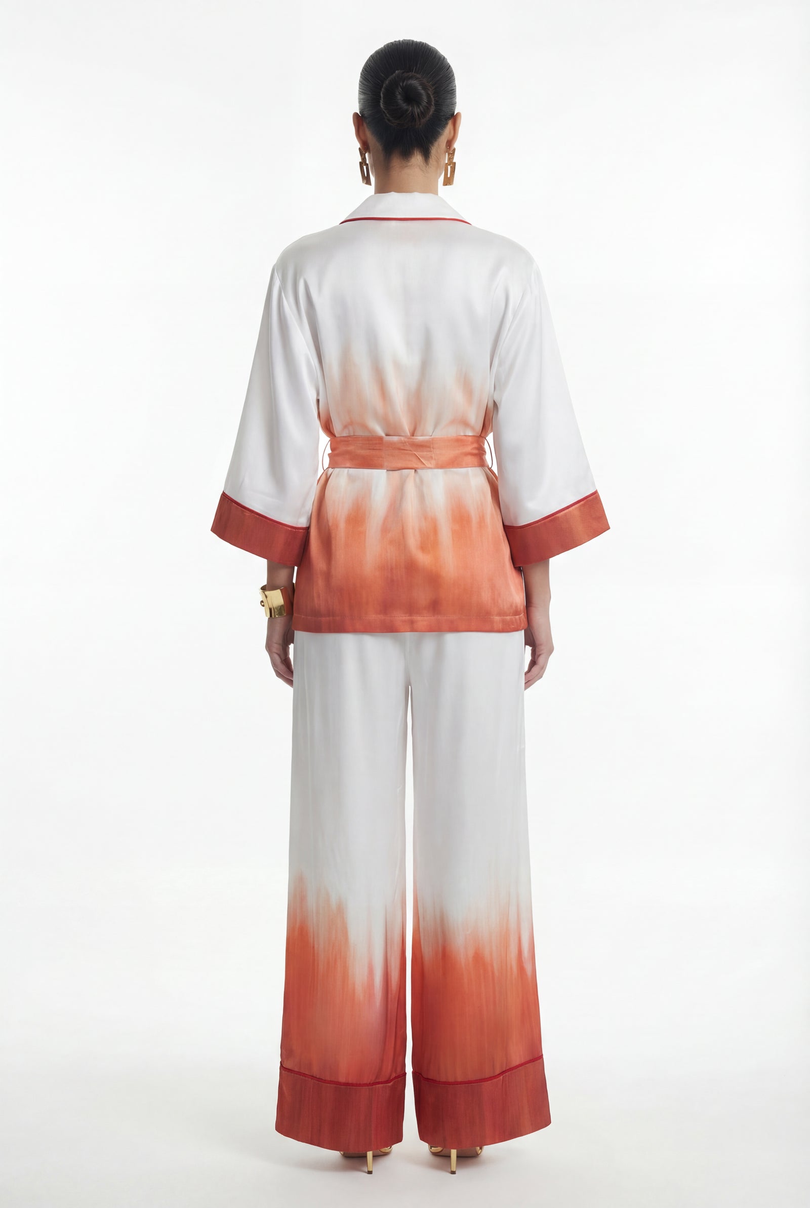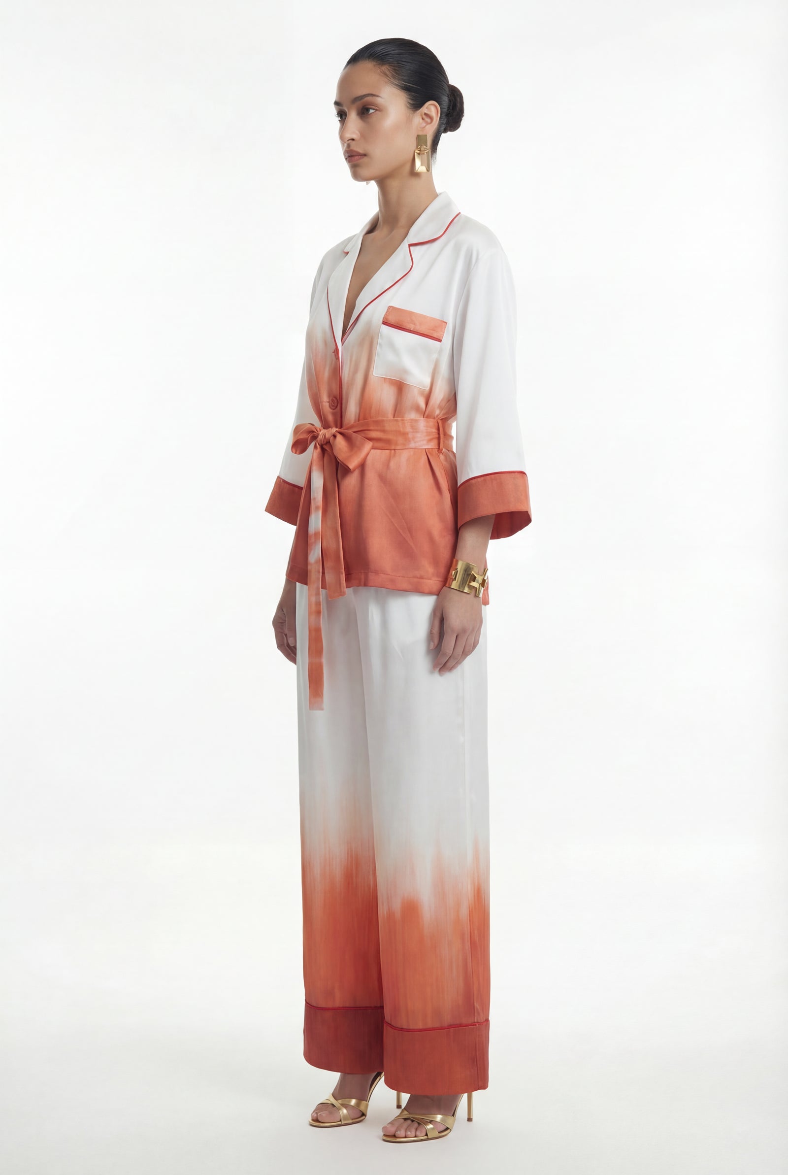 Orta ağırlıkta, saten dokulu parlak desenli kumaş.